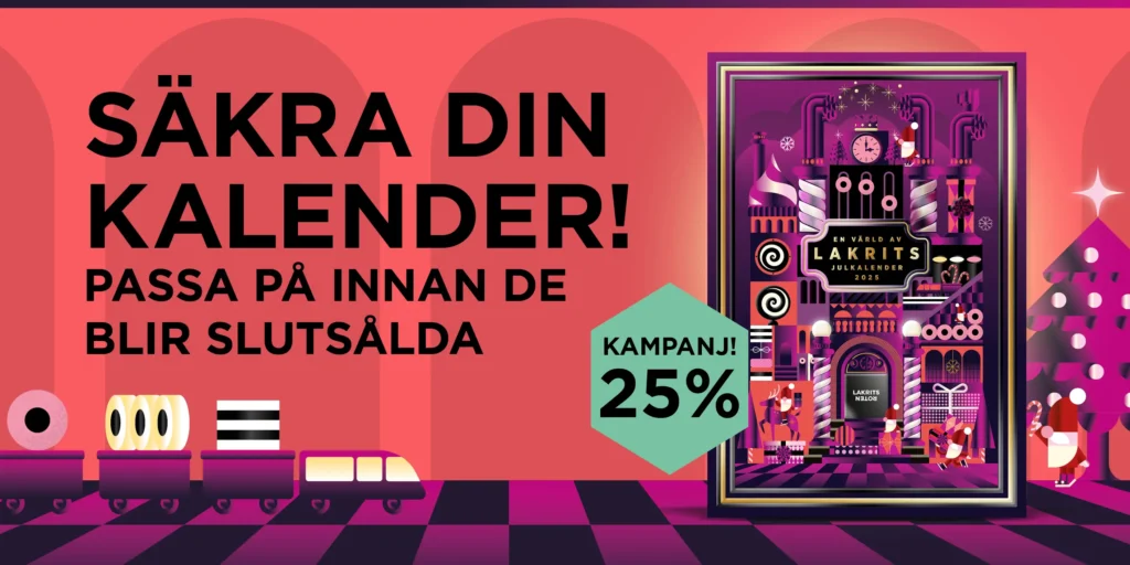 25% 25%LAKRITSROTEN JULKALENDER 2025Det ursprungliga priset var: 399 kr.299 krDet nuvarande priset är: 299 kr. Köp