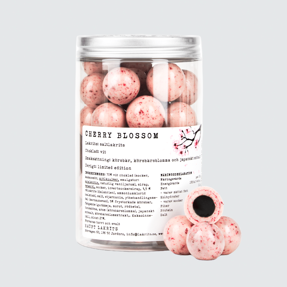 Långkokt saltlakrits möter krämig vit choklad, sötsyrliga körsbär & körsbärsblomma.Toner av mandelmassa,vanilj & romantik – med en oväntad twist!