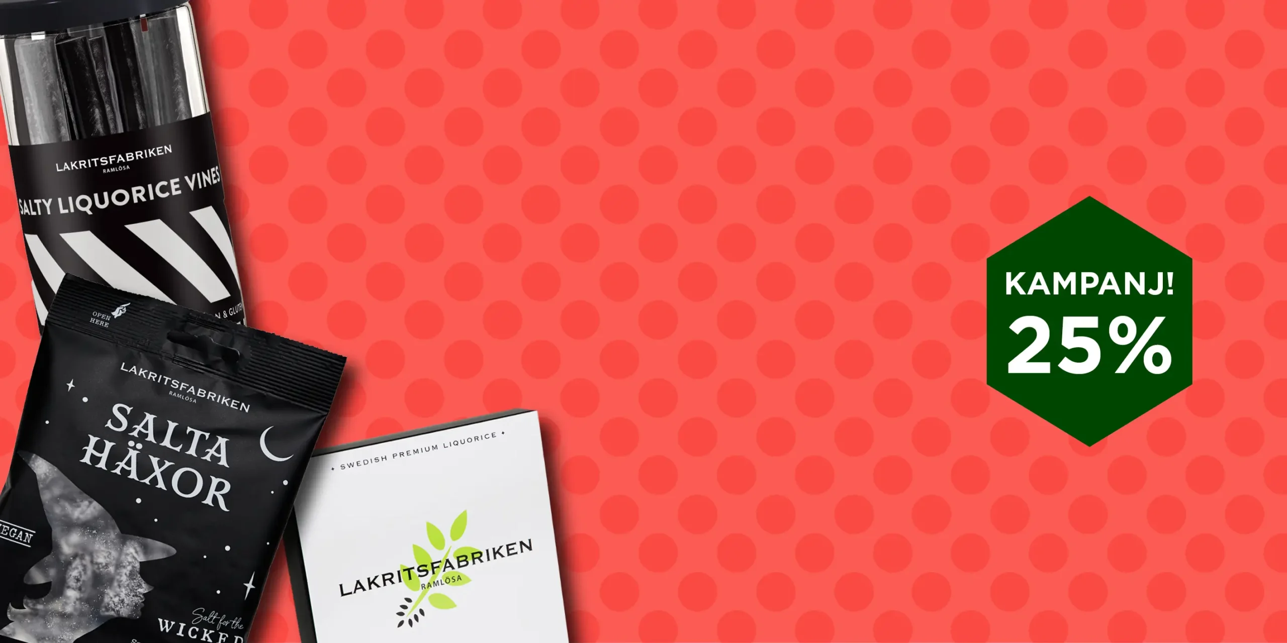 Lakritsfabriken- för dig som gillar mjuka saftiga bitar med en mer vuxen och stark lakritssmak än den traditionella, en premiumtillverkare med fokus på kvalité och den naturliga råvaran. Här bjuds på allt från rålakrits och lakritsrötter till lakritspulver! Mjuk saftig söt och saltlakrits och inte minst chokladdoppad lakrits i en mängd galet goda smakkombinationer. Hela sortimentet är helt glutenfritt! Tips! Världens första och enda rålakrits med salmiaksalt, Lakritsfabriken - Raw Salty!