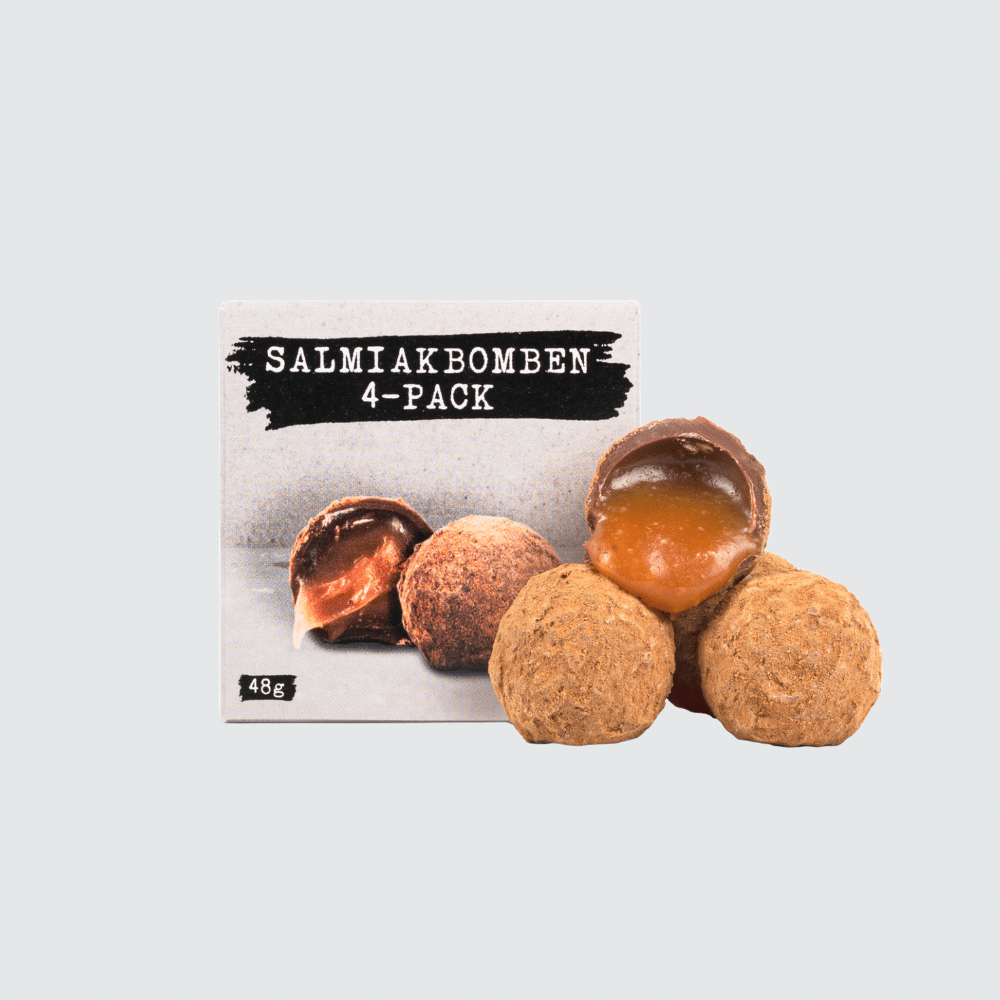 Haupt Lakrits Salmiakbomben är en av de finaste choklad och lakritsprodukterna vi har i sortimentet. 2016 vann den pris för årets lakrits och vi som testat förstår varför. Det är en chokladpralin fylld med len smörkola som rullats i saltlakritspulver. Våra stammisar i butikerna kan inte få nog. Den passar perfekt till ett glas bubbel och är en perfekt present.